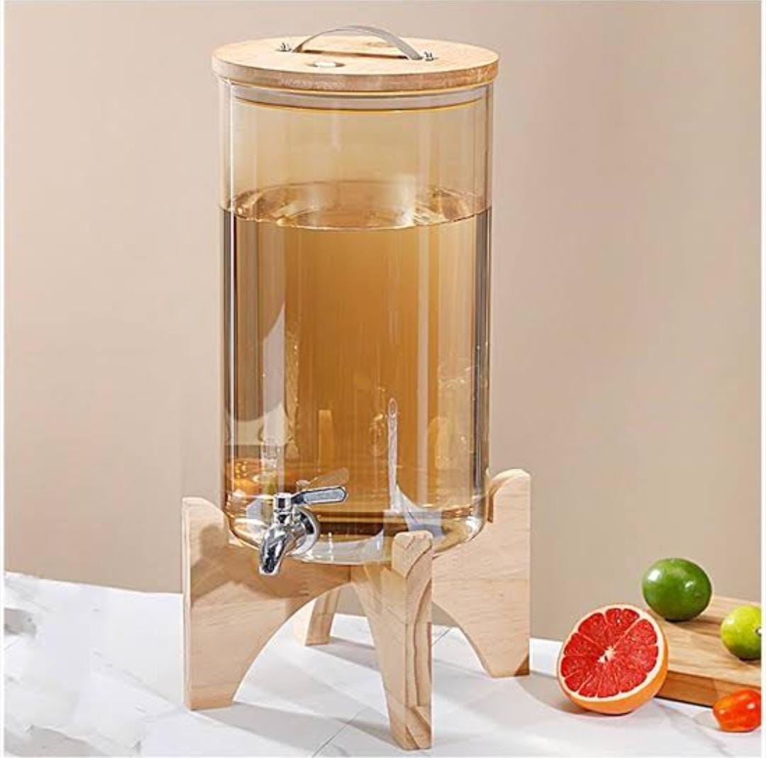 3.6L Golden borosilicate glass beverage dispenser with bamboo lid