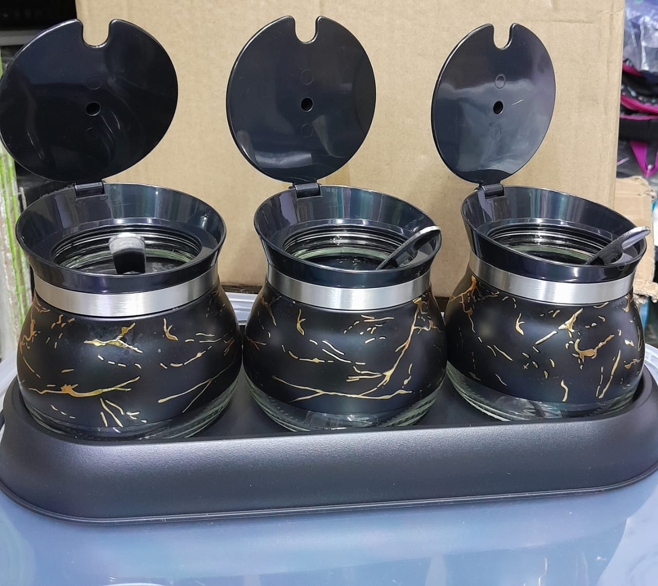 3 in 1 CONDIMENTS set glass