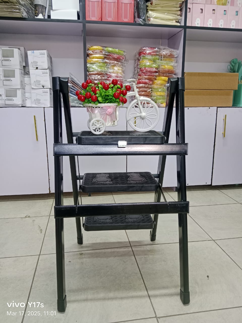 3-Step Black Foldable Ladder