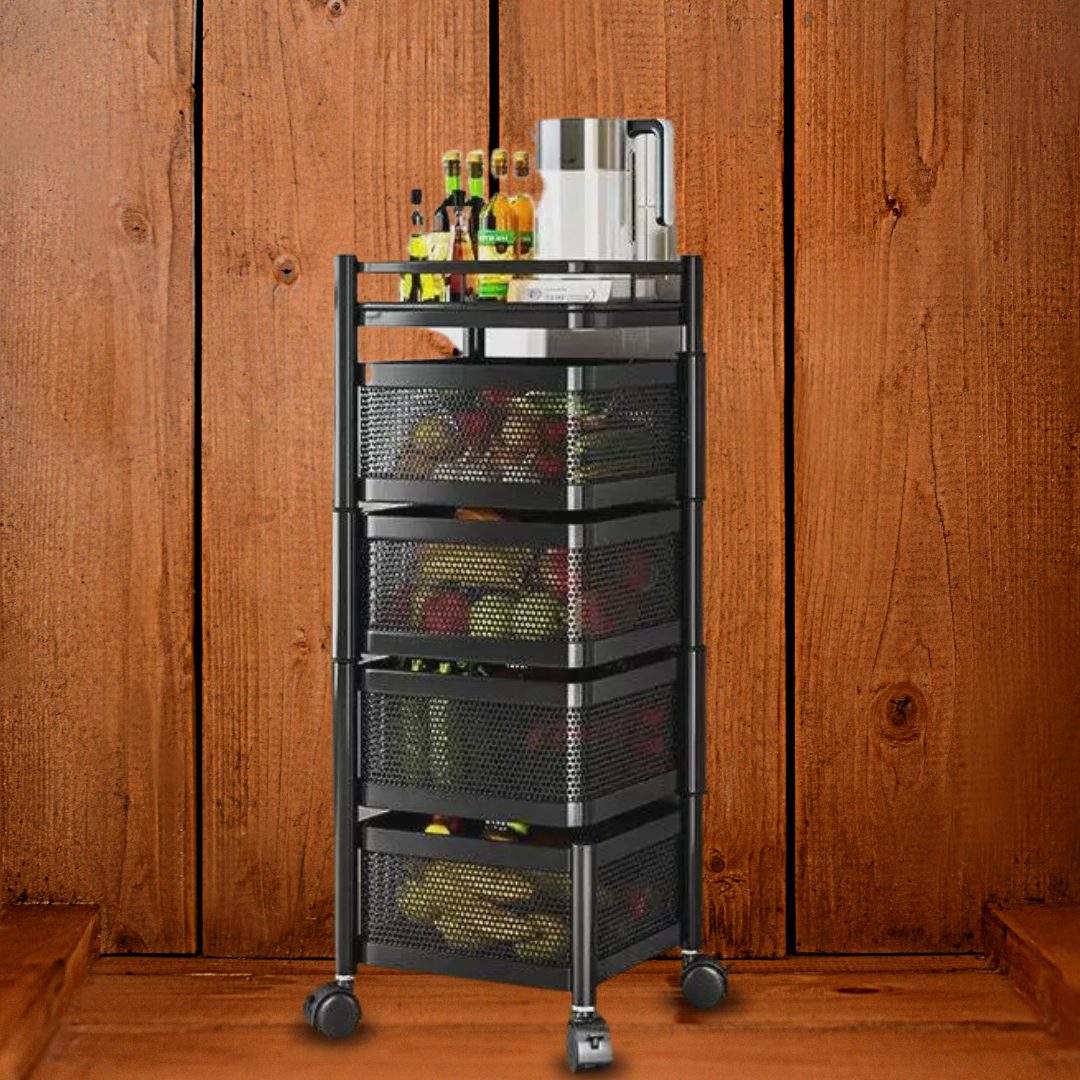 Rolling carts with multiple baskets provide enough space for your daily storage. Fully enveloping the guardrail, encrypted wire mesh ventilation basket, allowing airflow to keep the freshness of fruits and vegetables.