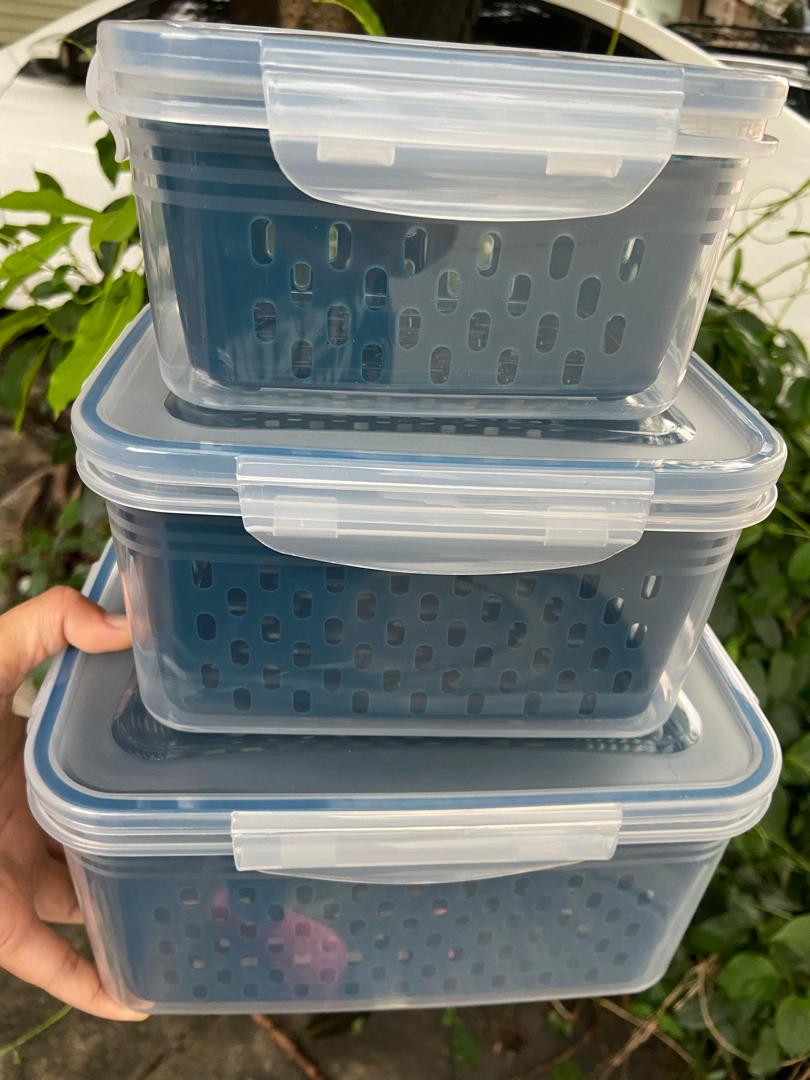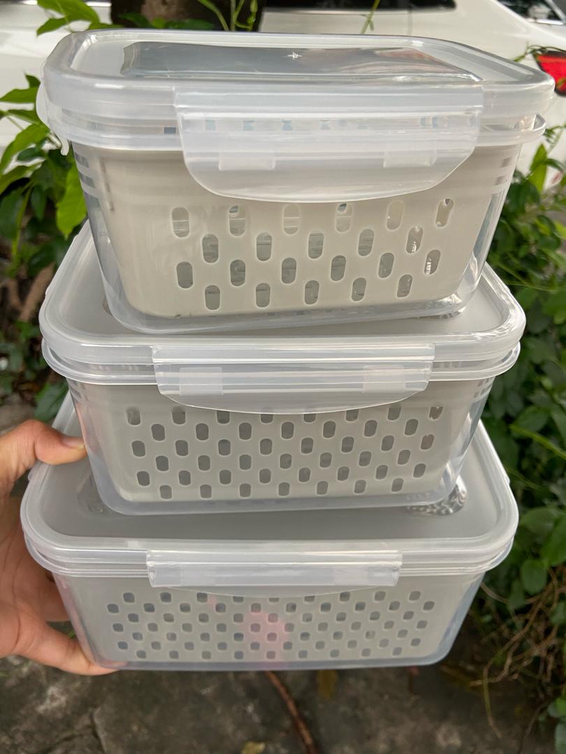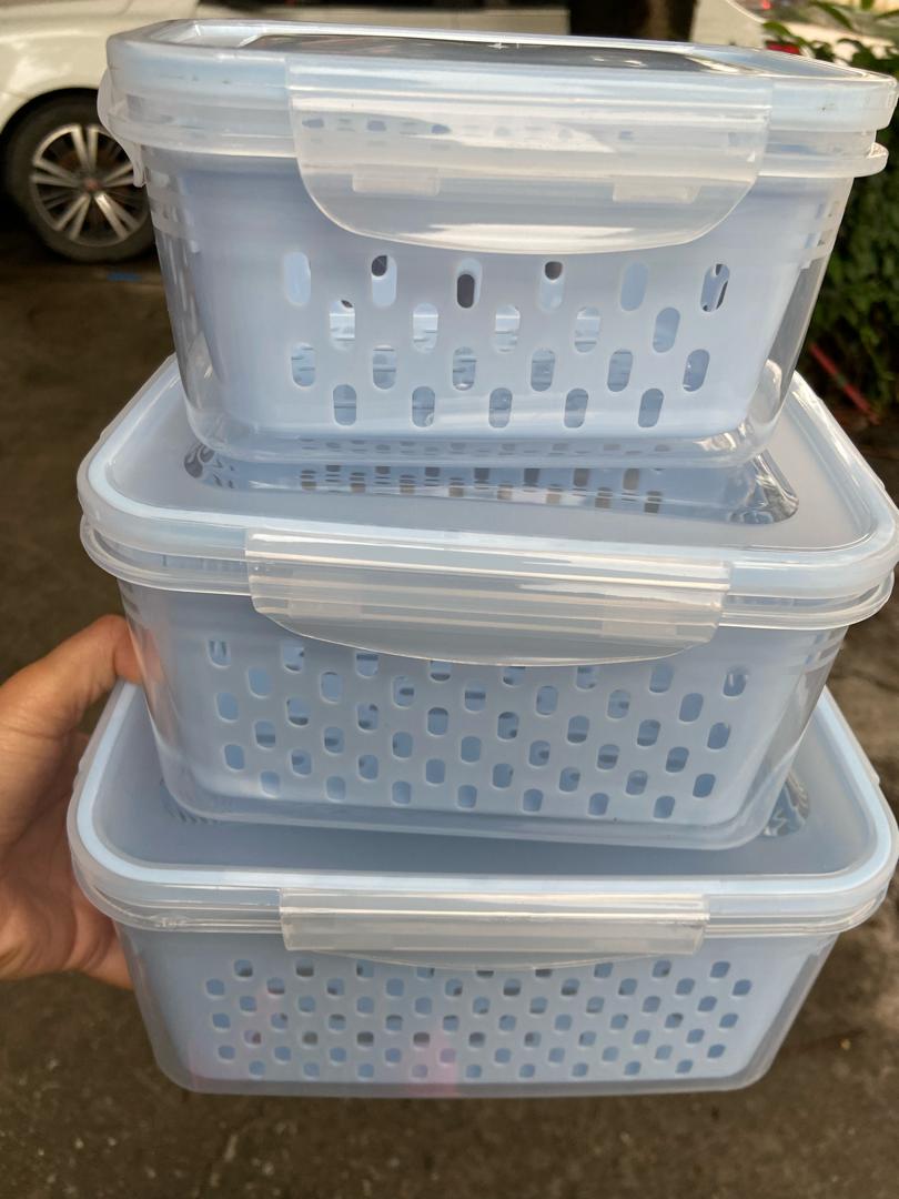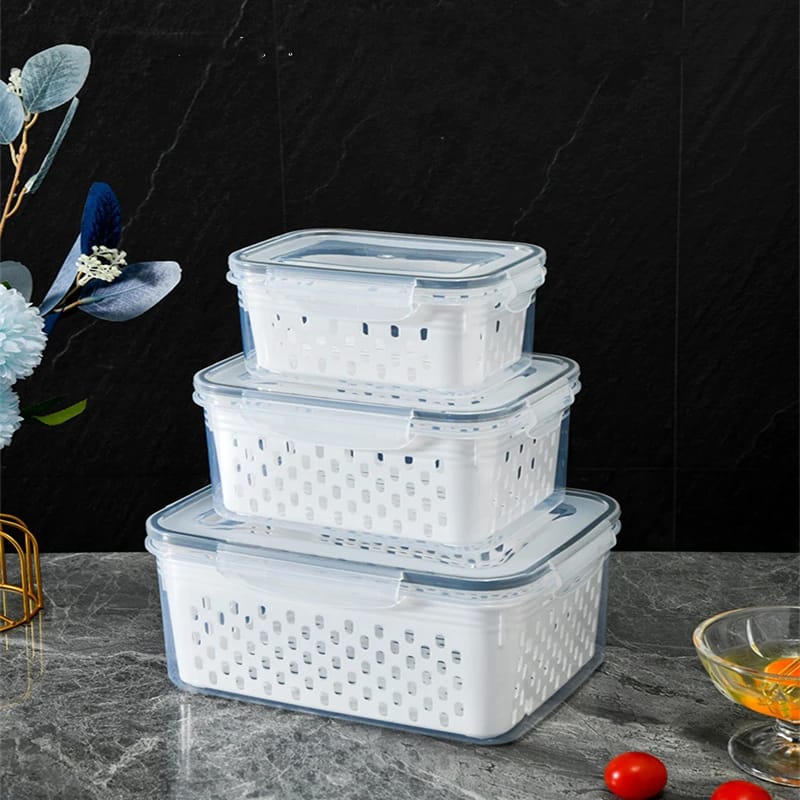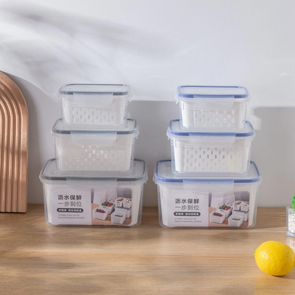 3pc Double Drain Basket Microwave Frozen Crisper Fruit And Vegetable Refrigerator Storage Container Drain Fresh Container