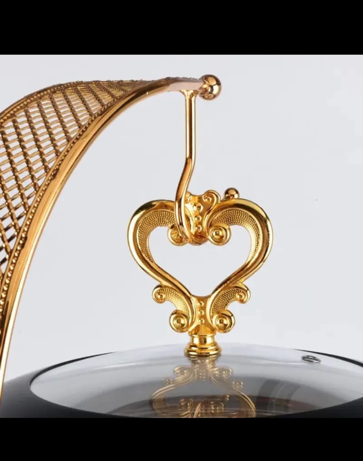 Elegant luxurious Chaffing Dish Food warmer with Transparent lid cover and Heating Stove at the Bottom.
