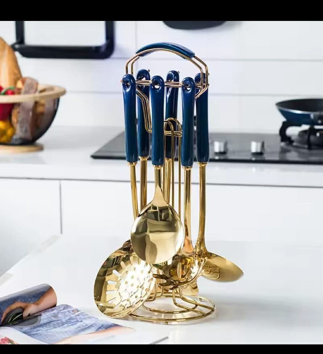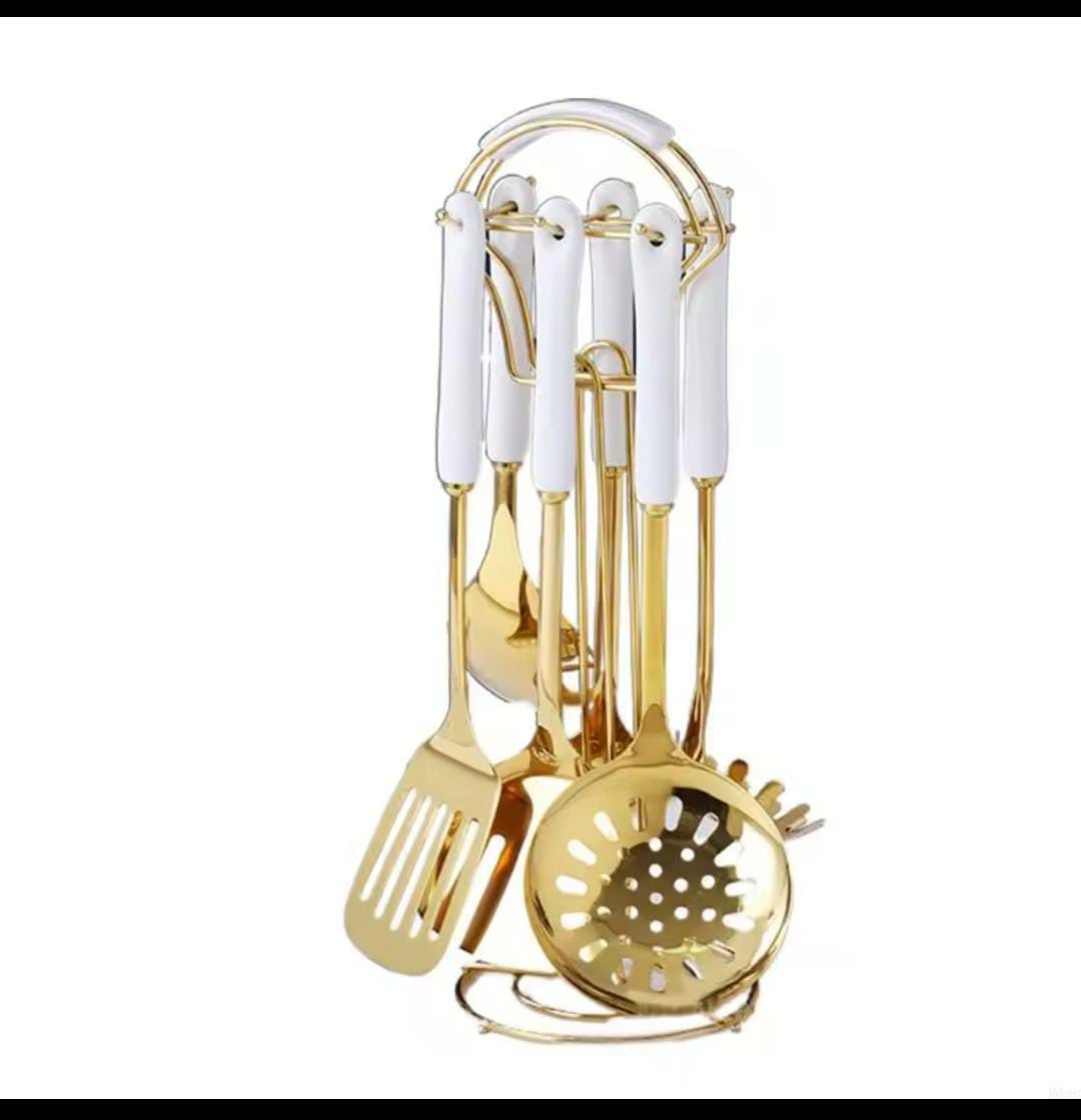 CERAMIC HANDLE Nordic & stainless steel serving spoon set now 7 in 1 set