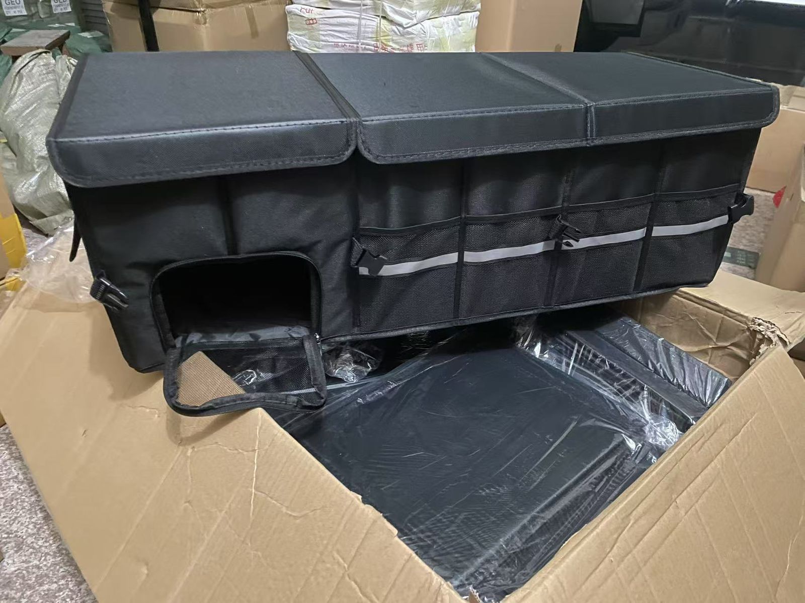 designed to keep vehicle trunks tidy.