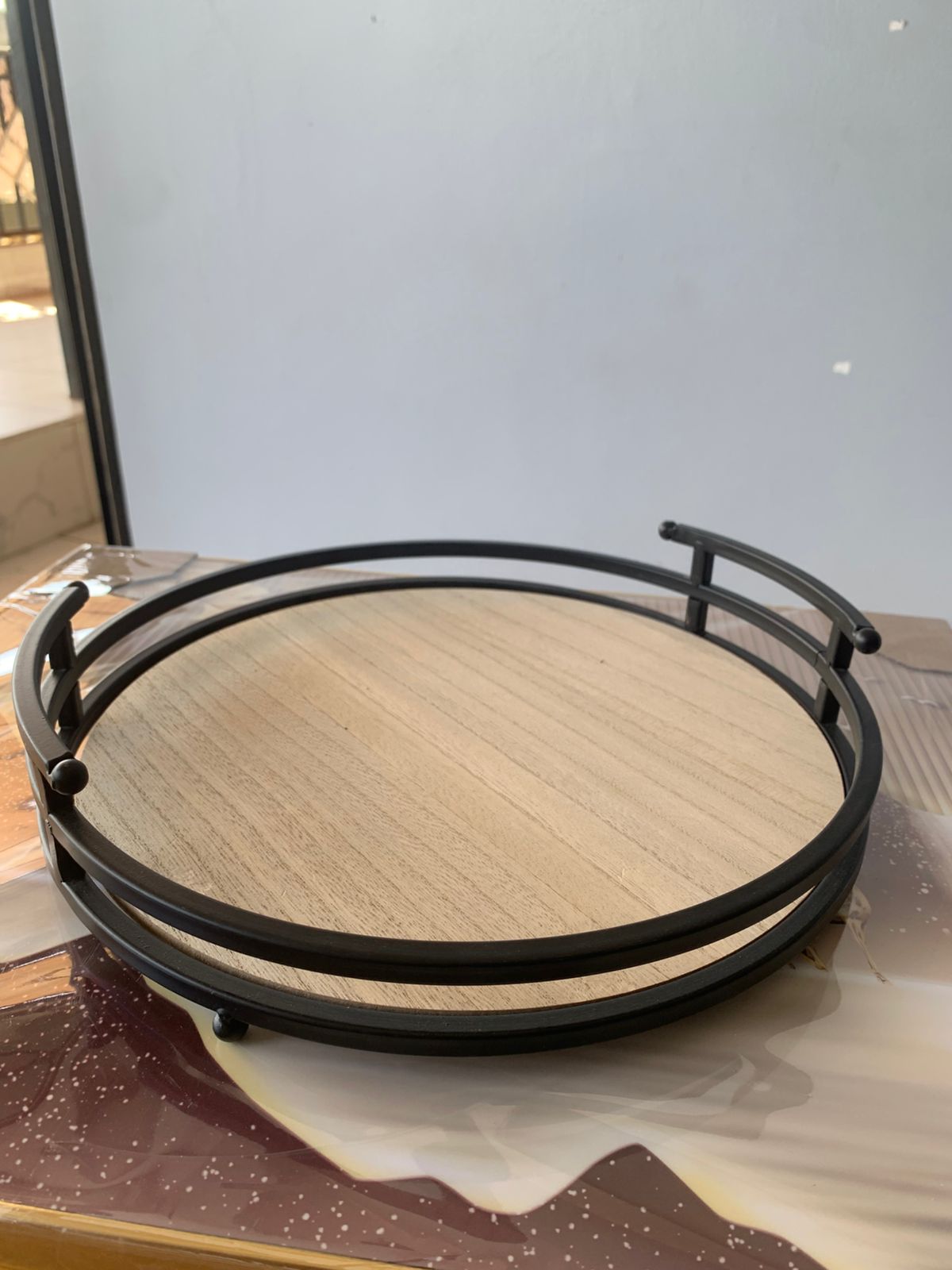 Home Decor Rustic Modern Metal and Wood Round Counter Tray