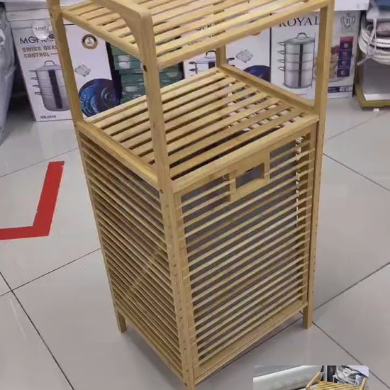 Laundry Hamper Bamboo Basket with removable fabric liner shelf rack.