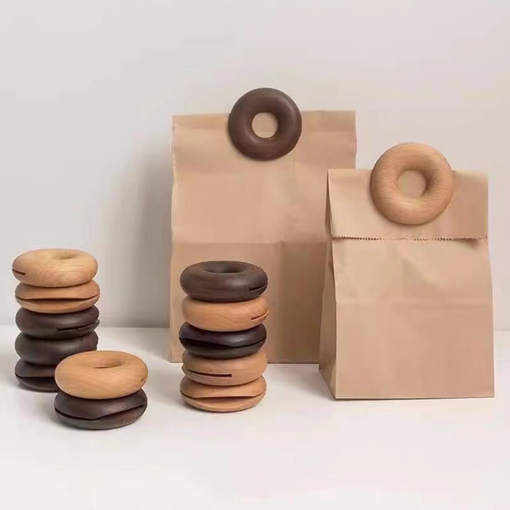 Wooden Food Sealing Clip Donut Sets, Snack Bag Clip Coffee Bags Sealer for Home Kitchen Seal Storage Keeps Food Fresh