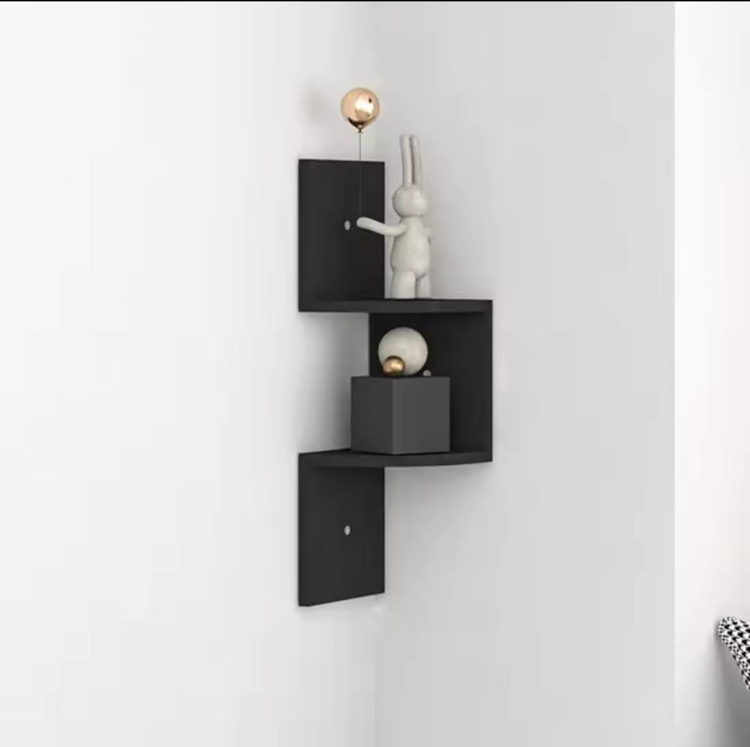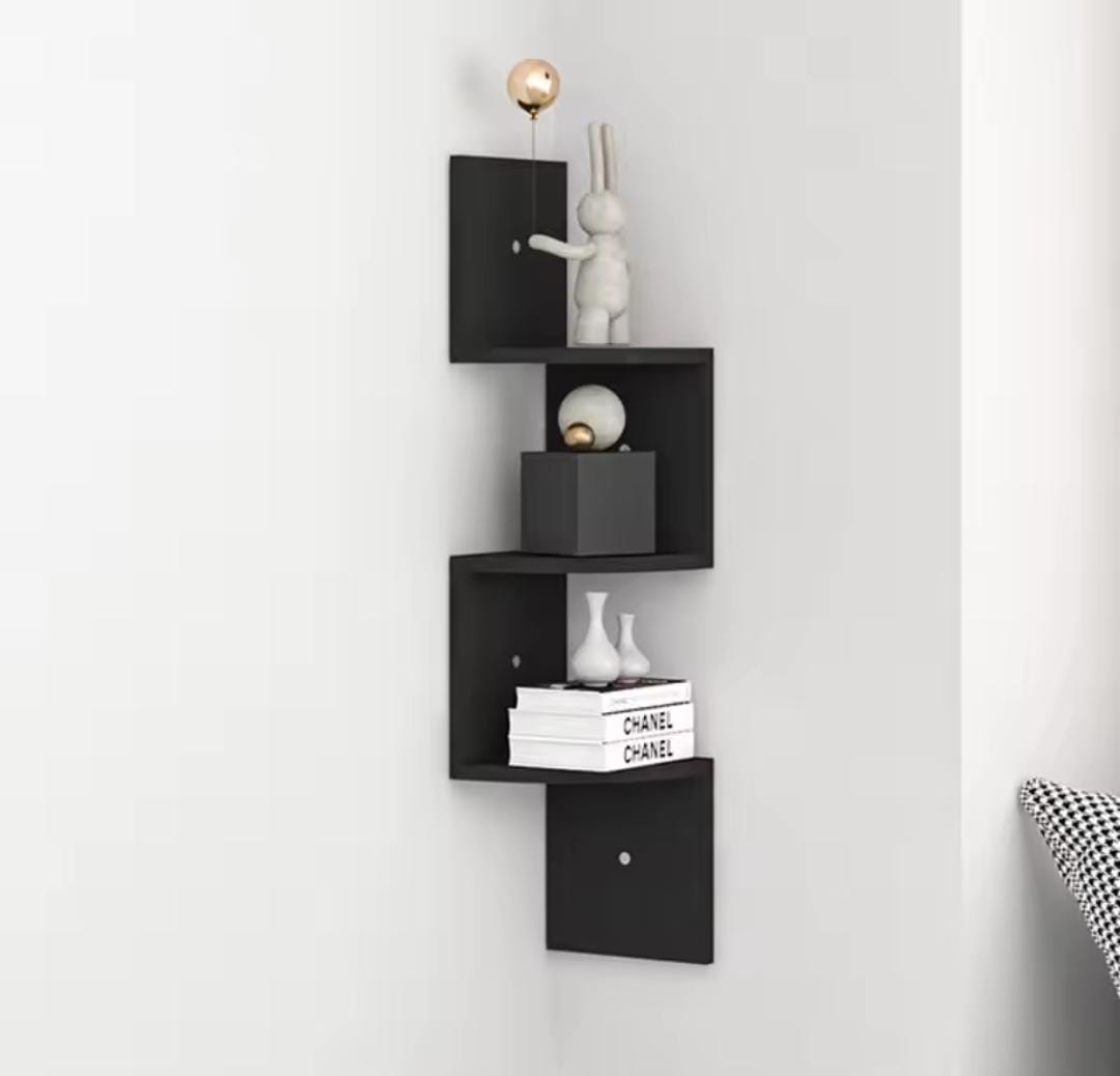 MINGYI DIY 5-tier corner shelf, corner shelf made of MDF wood, hanging bookcase, zigzag shaped shelf, approx. 20 × 20 × 123 cm (black) drilling on the wall may be required