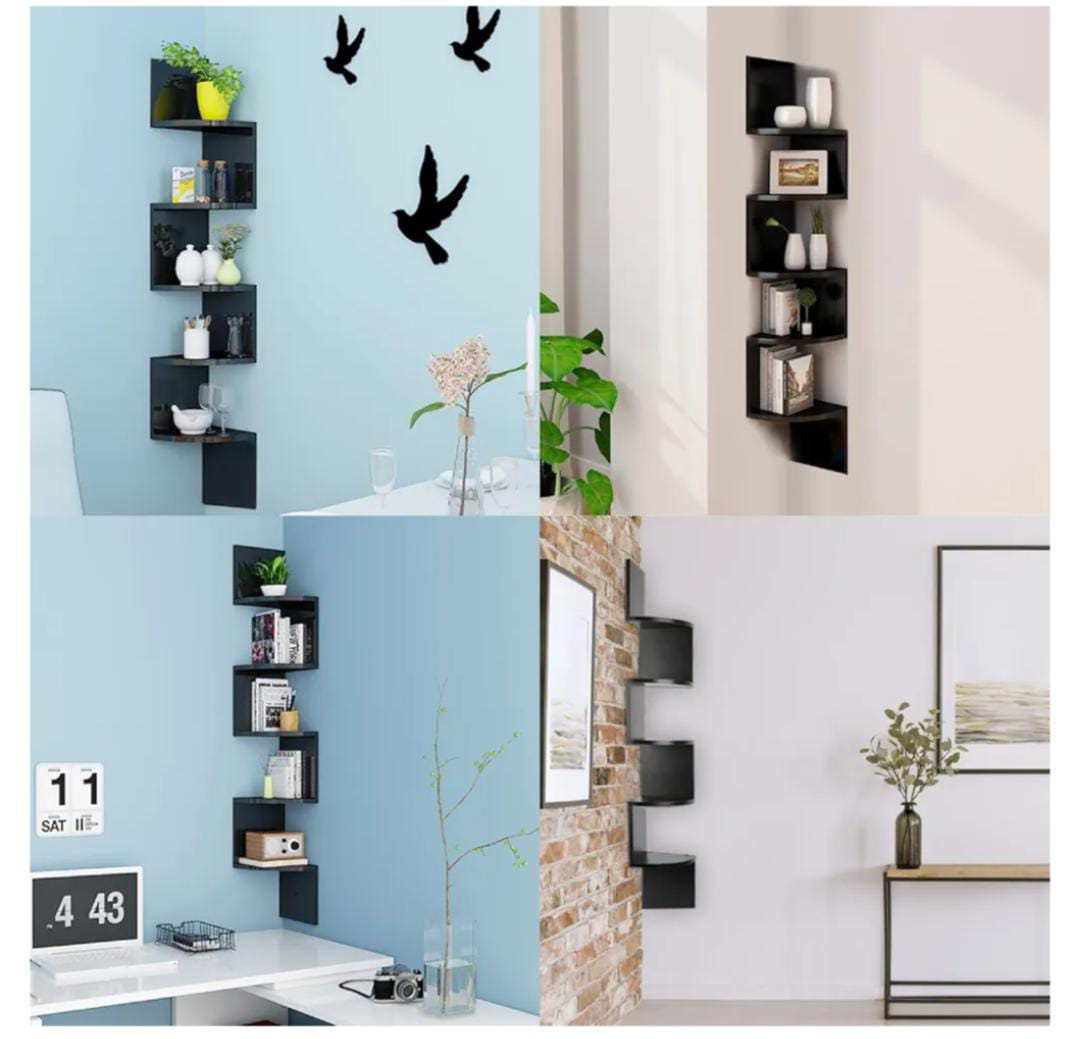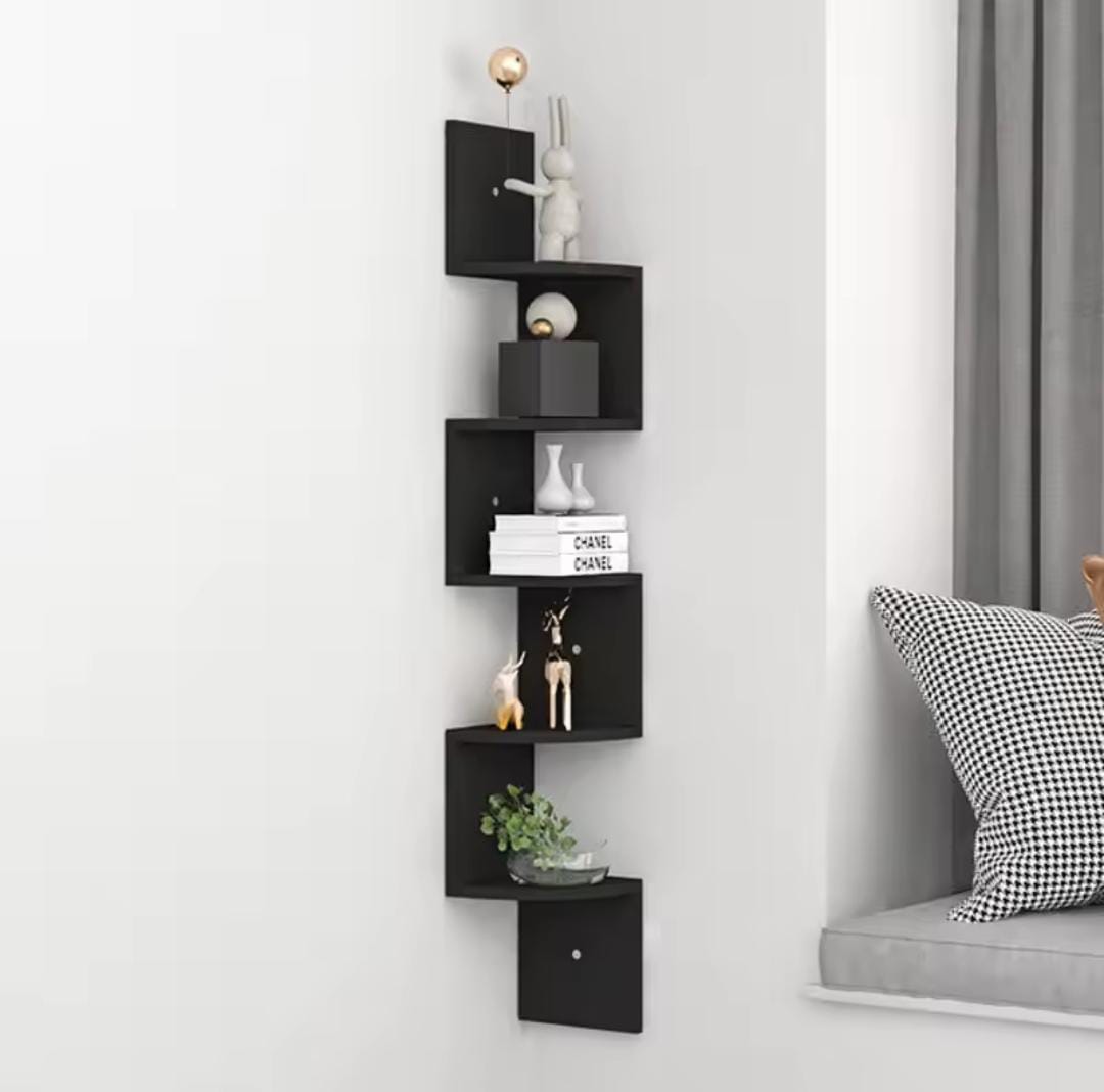 MINGYI DIY 5-tier corner shelf, corner shelf made of MDF wood, hanging bookcase, zigzag shaped shelf, approx