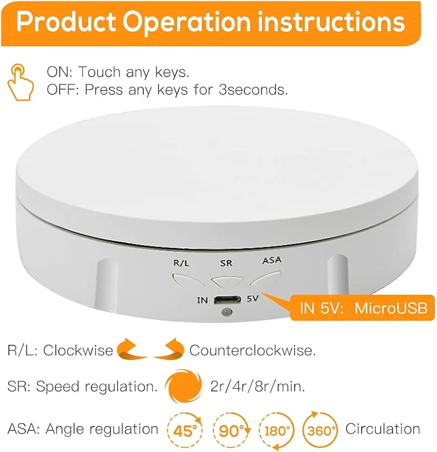 Electric Rotating Turntable Display Stand can manually adjust the rotation speed and direction, 8 seconds, 15 seconds, 30 seconds per circle, 90 degrees round trip, 180 degrees round trip, 360 degrees round trip , Forward and reverse function, you can adjust according to different needs. Suitable for all-round display and angle
