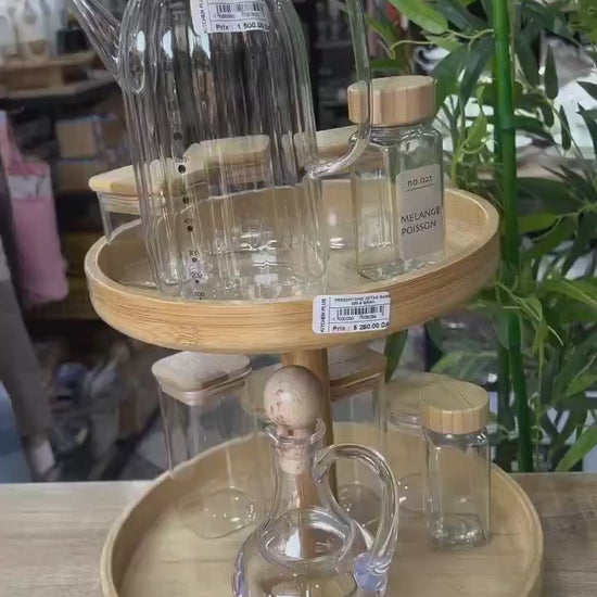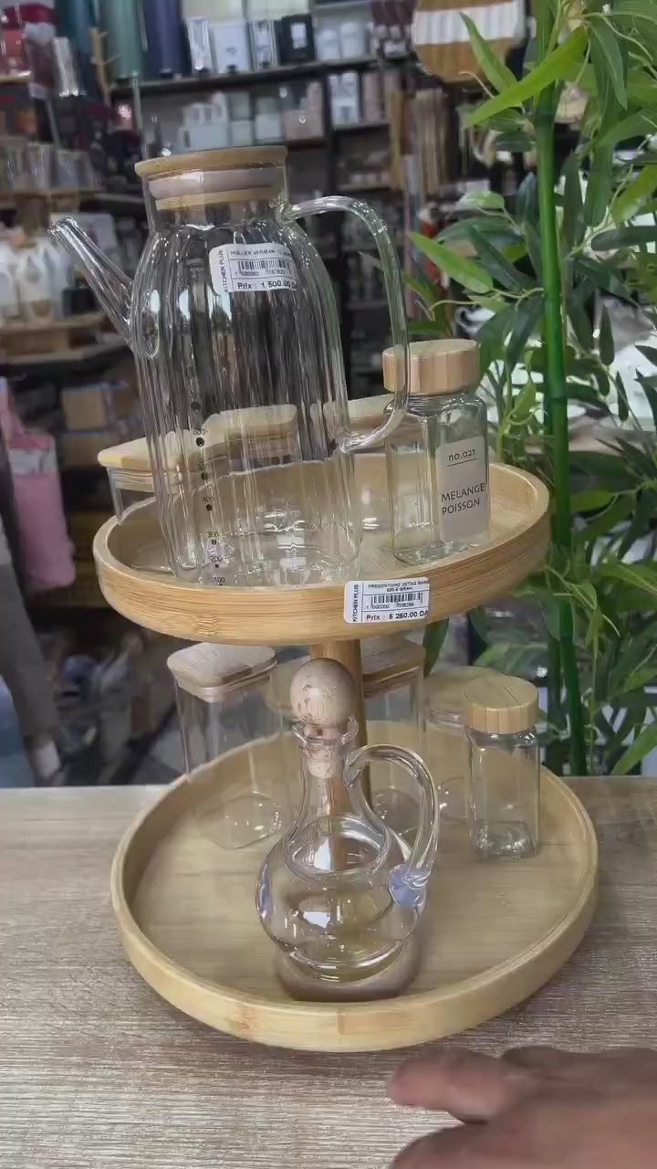 New Bamboo Double layer Rotating kitchen Seasoning storage Rack wood.