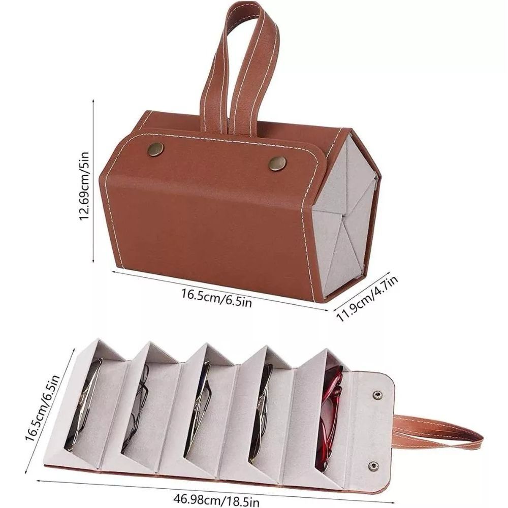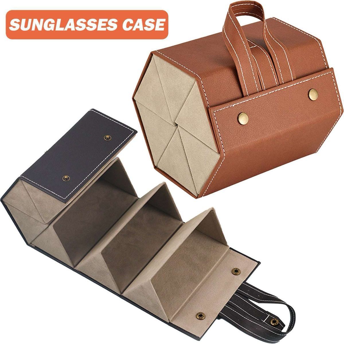 Sunglasses Organizer Box / Folding Portable Glasses Travel PU Leather Case