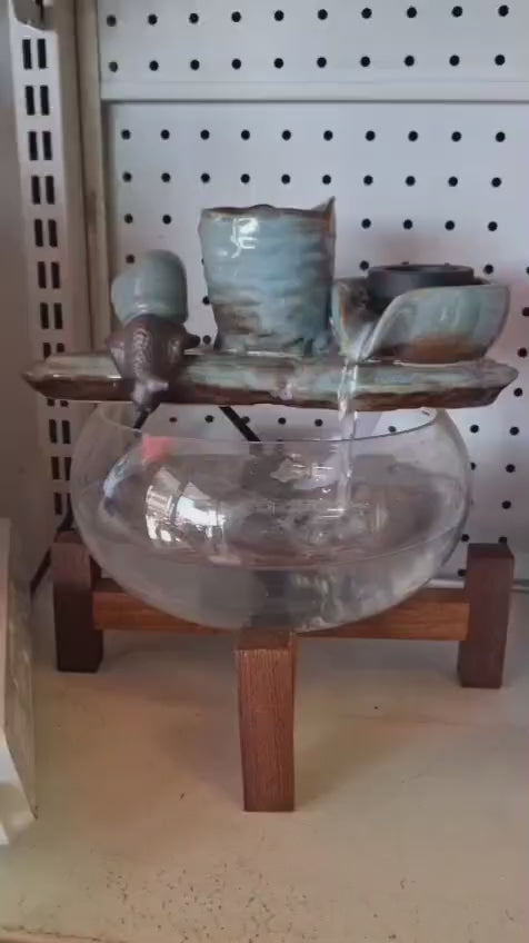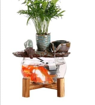 A stunning Feng Shui inspired aquarium with mountain sculpture and cascading waterfall for good luck and harmony.