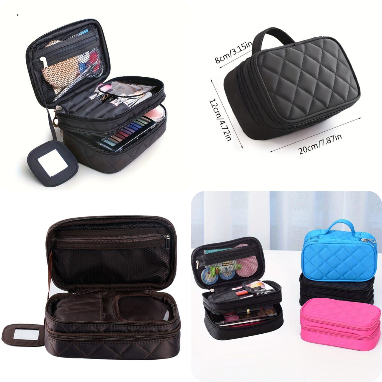 WATERPROOF DOUBLE LAYER COSMETIC STORAGE BAG/ MAKEUP BAG WITH MIRROR