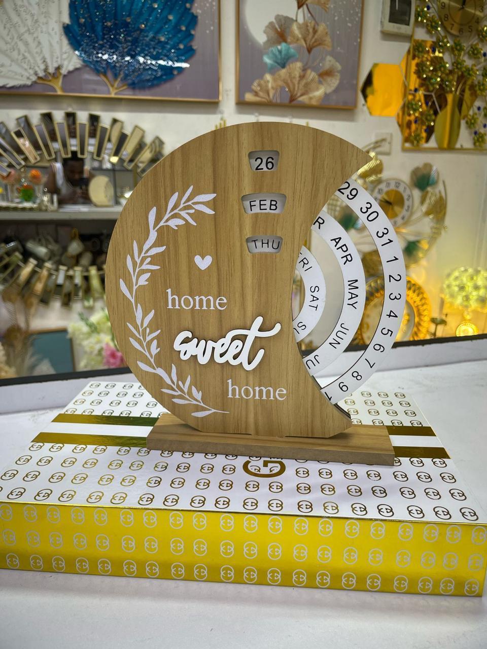 Wooden Creative Perpetual Calendar Home Decoration Office Desk Ornaments Manual Rotating Turntable Calendar